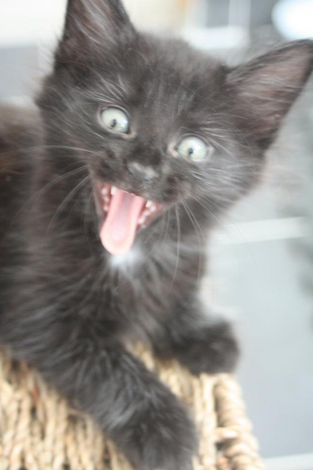 Cheeky with a capital c is written all over this mischievous boy's face, and has been since the day he was born. You cant help but fall in love with frankie with his fluffy black coat with wisps of white,not to mention that cute and adorable face that looks up at you and certain to melt every cat lovers heart!!
