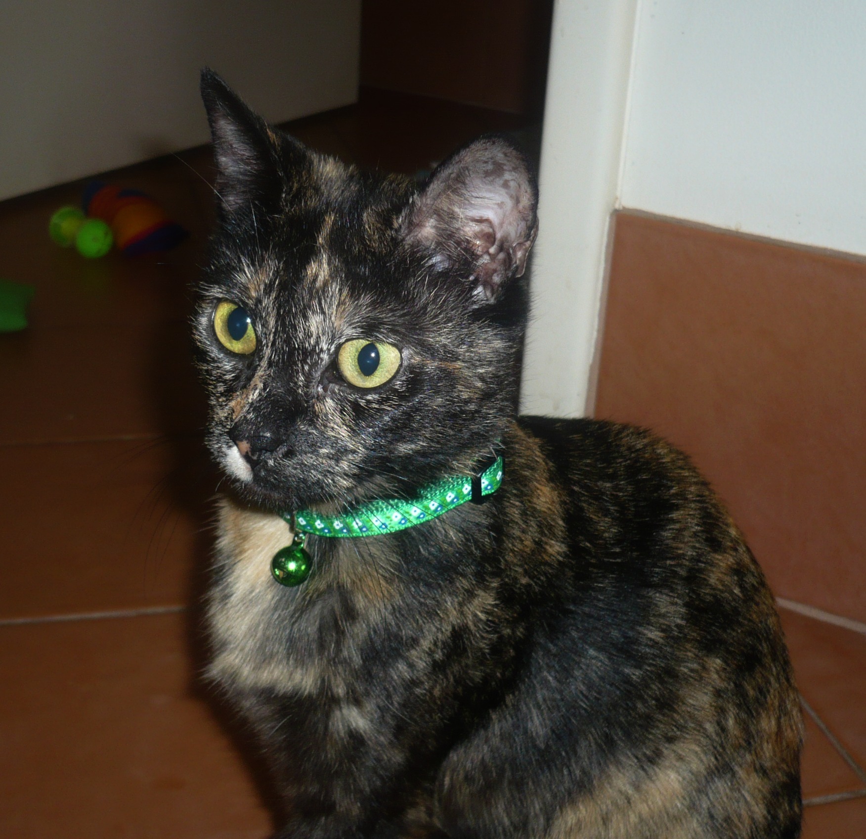saffie would probably prefer a home without other cats, although we think she would get used to another cat if need be. She is fine with our dogs now she is used to them. Saffie is a great, fun family member and is a joy to have around. Please ring to come and see her for yourself!