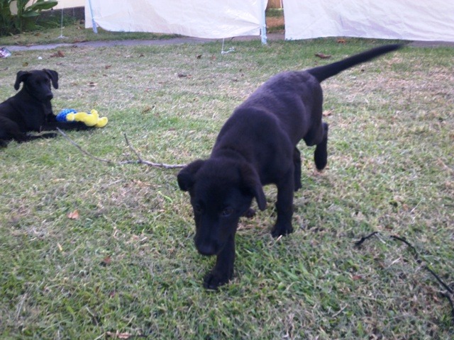 Gypsie will be available for adoption after the 08/02/2012. Gypsie has a very sooky nature with that beautiful smile. She is starting to learn basic training but will need much more. She will be a large dog (her mother is a purebred german shepherd) and will require a large, secure fully-fenced yard. Daily exercise is a must to keep her content and out of mischief. Gypsie's beautiful black short coat will be easily maintained with regular brushing