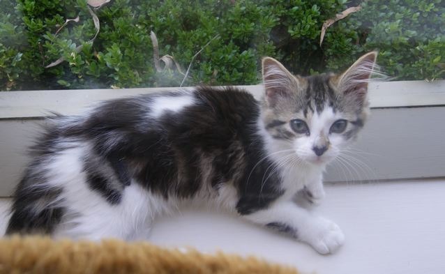 Lilly is a 16 week old girl with medium length white and grey hair. Lilly has a very sweet nature and is always ready to curl up on your lap or equally happy to play with her siblings