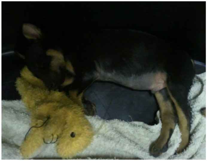 This pet has been adopted and found love with its new family.