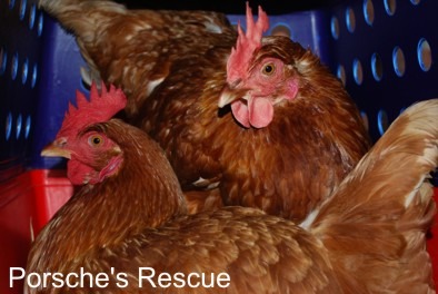 both chookies seem very comfortable around humans, and are easy to handle. They must have been someone's pet before being dumped, and have been well cared for. If you wish to give these girls a home, please fill in an adoption form at: www. Porschesrescue. Com