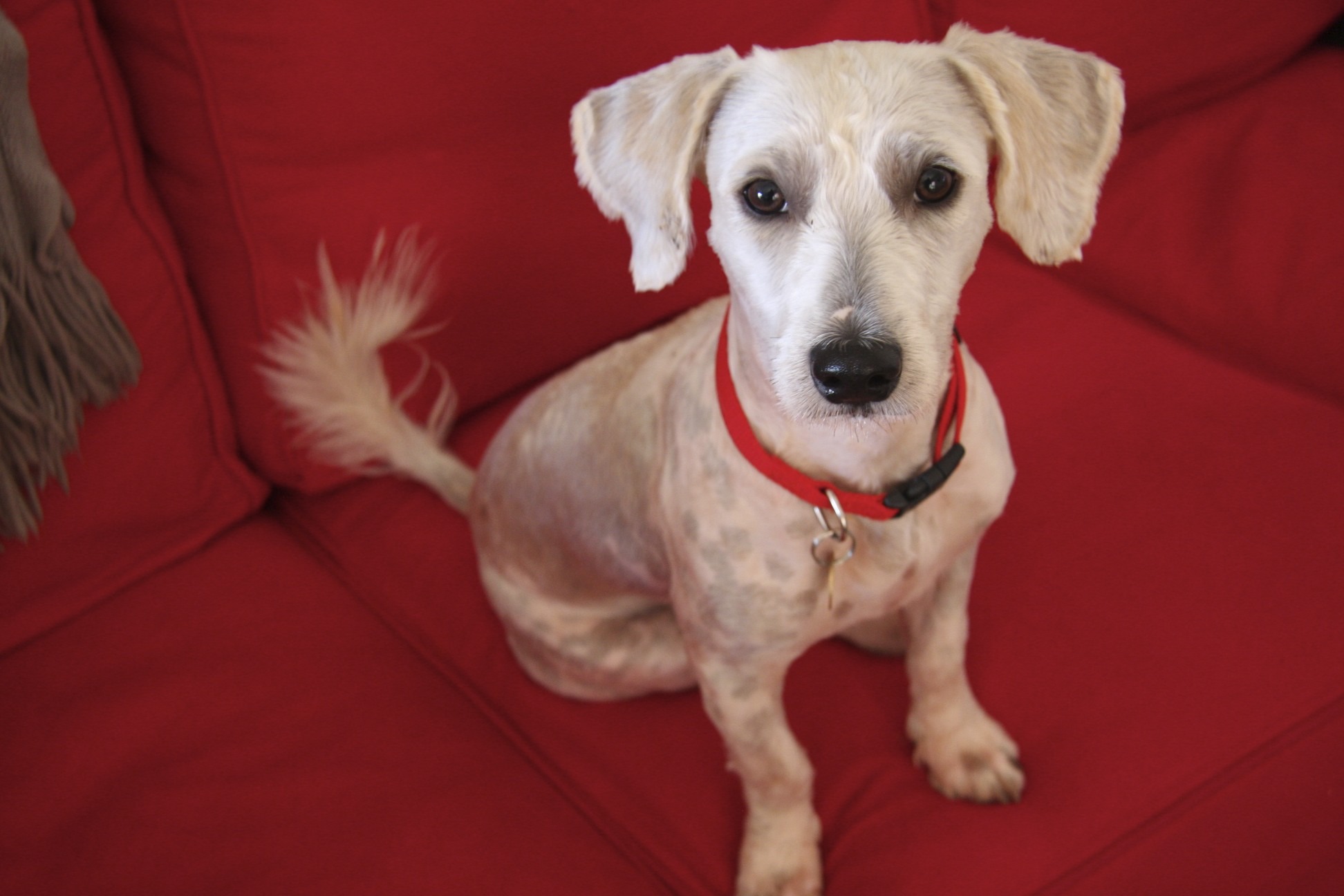 joe has minimal obendience training, although he is very intelligent and is food motivated - so he would be easy to train by someone who has the time and the patience. Joe is very nimble and a high jumper, so he needs to go to a home that has secure, reasonably high fencing. *joe is cut very short in these photos as his hair was severly matted when he came to safe hedland. His hair is normally quite long, wiry and white in colour. *