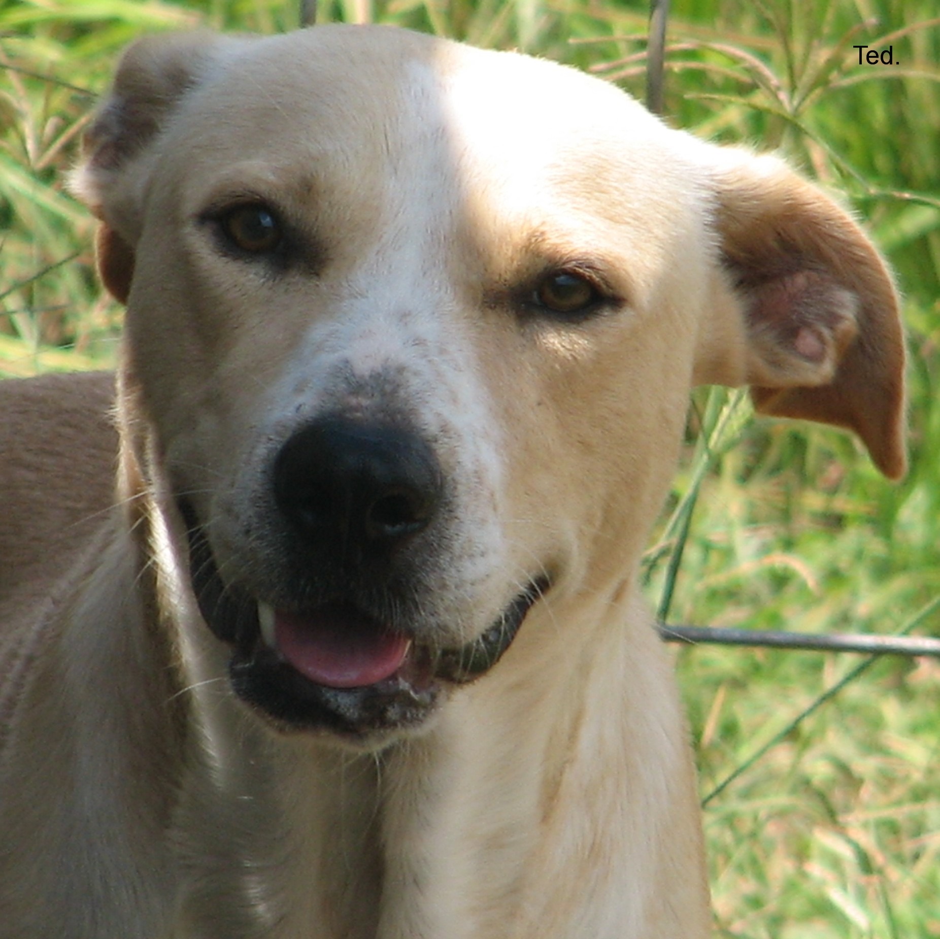 Ted is a big boy with a loving friendly nature. He is slightly timid, so will need a bit of gentleness until he gets to know you, but should become a loyal and devoted companion. He can be a bit bossy with other dogs, and would be better with a female doggy companion