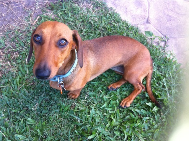 Pumpkin was originally found wandering on the side of the road unwell and underfed. She was taken home and her family contacted but they no longer wanted her. She was subsequently given to a lady who already has a dachshund but because pumpkin escapes she needs a new home. Most dachshunds are known for digging under fences, pumpkin jumps them. She has done this several times and jaunts off on her adventures, causing chaos amongst the poor dogs who are all behind their own fences and leaving the neighbourhood with a lot of barking and jealous dogs, before casually returning home. Clever girl that she is she has also found her way to her owners work place on her own having walked the route a few times on leash. As well as being extremely intelligent she is an exceptionally affectionate dachshund and loves nothing more than sitting on your lap and smothering you in kisses. She has met a couple of very young children and has been very patient with them, so she's not a mean dachshund, just a little bit of an escape artist!