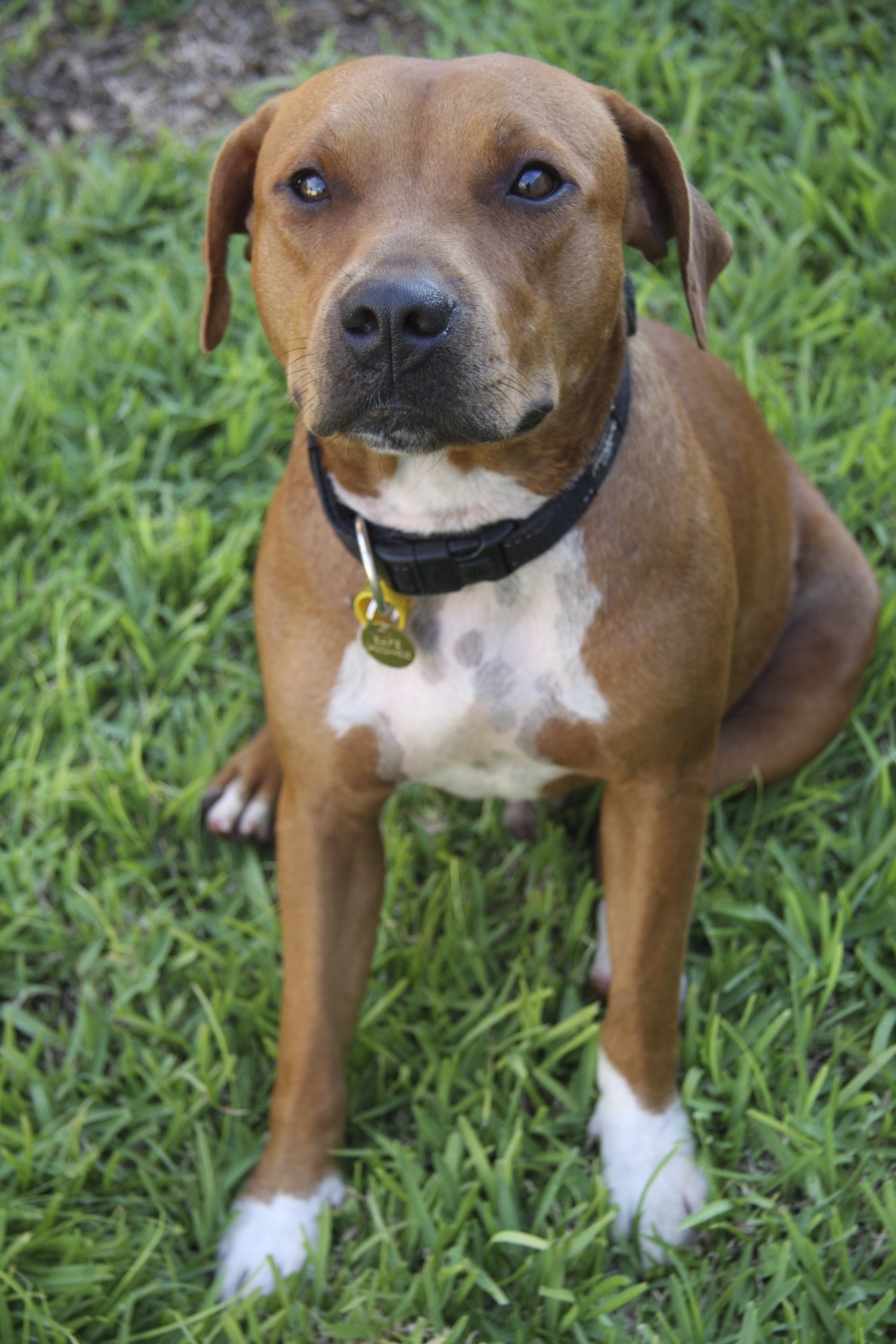 Chopper is a friendly, placid fella who loves the ladies and enjoys a good pat and a cuddle. He loves going for walks and swims at the beach. Chopper is an outdoors dog - he is not house broken, but could be with some training. Chopper is good with children, but we would recommend he be re-homes with older children as he does have a tendency to jump up. He would be best suited to a family with a good sized yard and high fences - he can jump quite high. Chopper needs to be walked daily as he has plenty of energy, and if not exercised will try to escape from his yard. Chopper is not a big barker but he is a very alert dog. We would prefer to re-home chopper to a family where he would be the only dog in the home