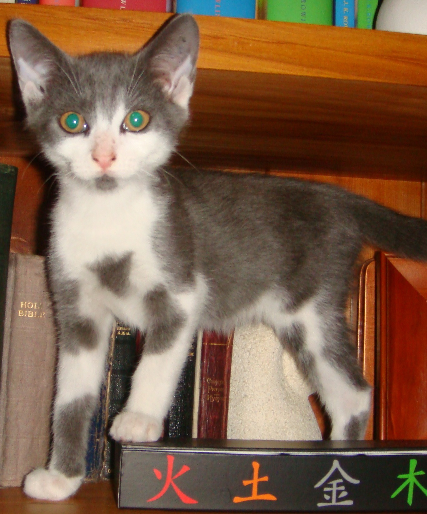 Little jerry is such a gorgeous placid little fellow and can be very quiet and unassuming until his brother tom pounces on him and then it is all on. They play and roll around together for hours until exhausted and usually curl up together near where i am working or resting. Jerry has lovely markings and very velvety fur. Even a cute little grey spot under his chin. Very affectionate and certainly a little mischievous, like all kittens. Jerry and his brother tom are great mates and usually come up to me with a little meow and try to climb up for a cuddle. Usually found in the evenings curled up on my lap in front of the tv. I would love them to go to a home together if possible as they are usually inseparable