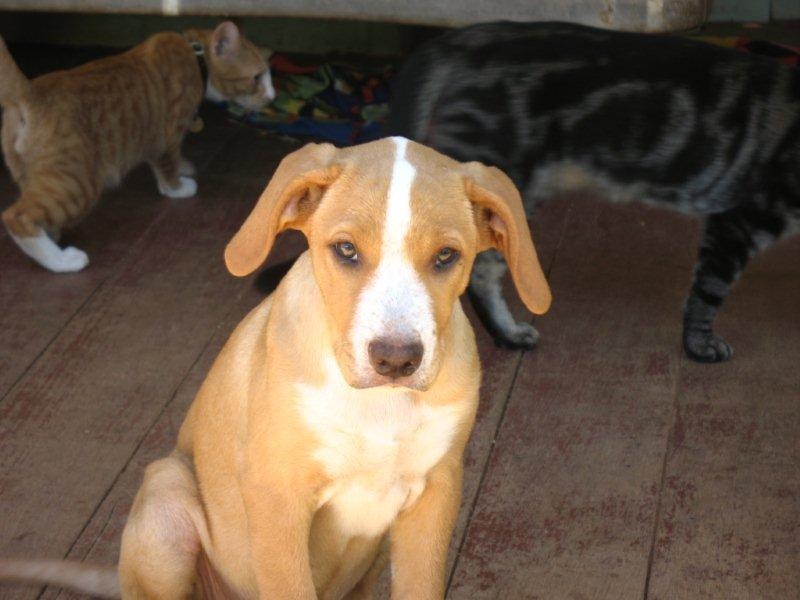 Sofia was found wandering at only 4 weeks old. She has been in care with us for a while now and is a really nice sweet girl. She loves other dogs, cats and kits and is fine with guinea pigs and rabbits also. Sofia will most probably grow to be slightly larger than medium size. She is great with kids. Sofia has been raised as an outside dog with inside priveleges. This girl comes de-sexed, vacc, wormed, micro-chipped and flight to perth is included. For more info on this nice looking girl, please email mary below