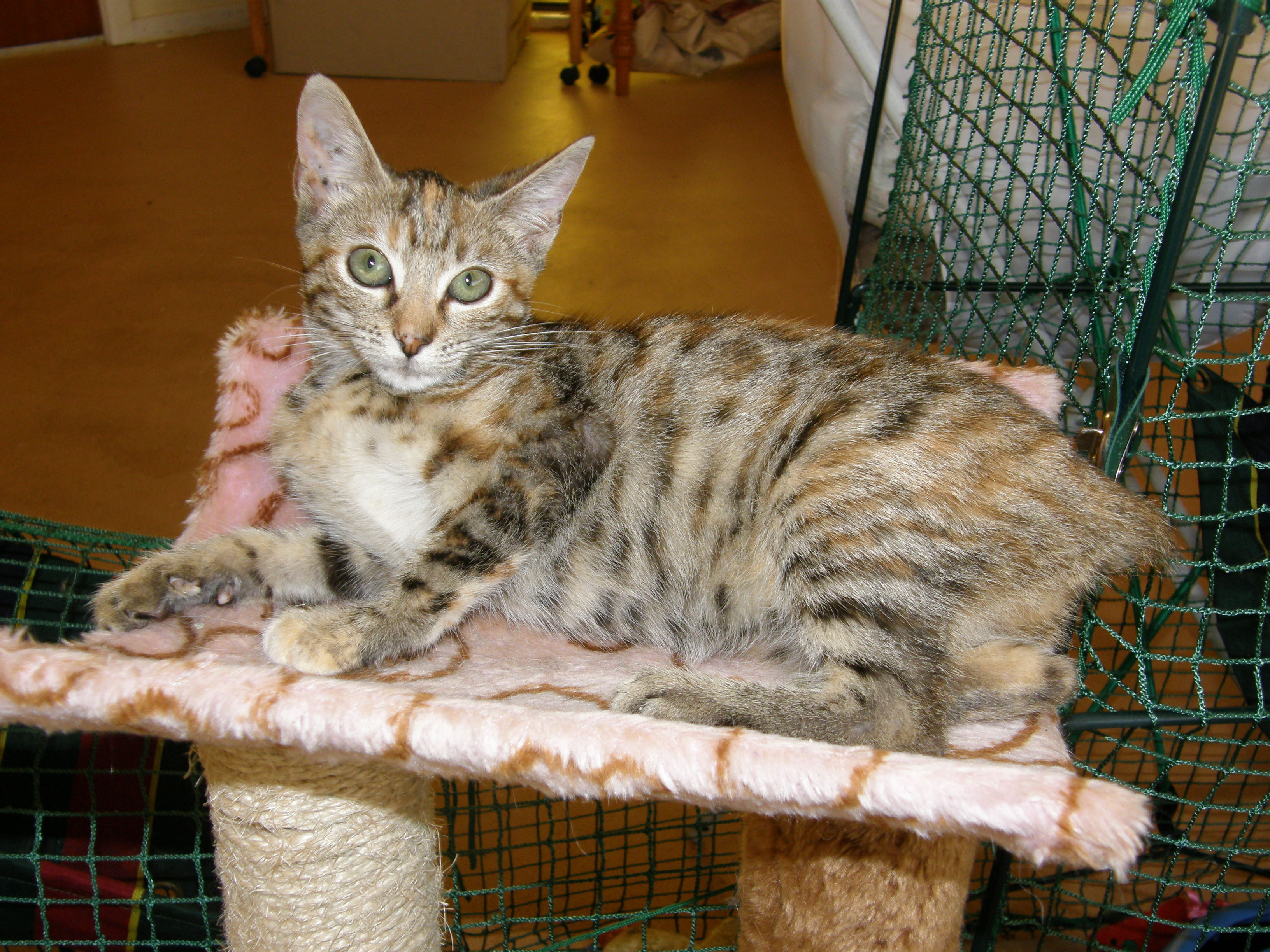 Beautiful little banx, a cross between a manx and bengal. Amber is a lovely little girl, very active and extremely friendly and easy-going. She gets on well with other cats and dogs and is looking for a loving forever home after being dumped with her two siblings, abbey and annie