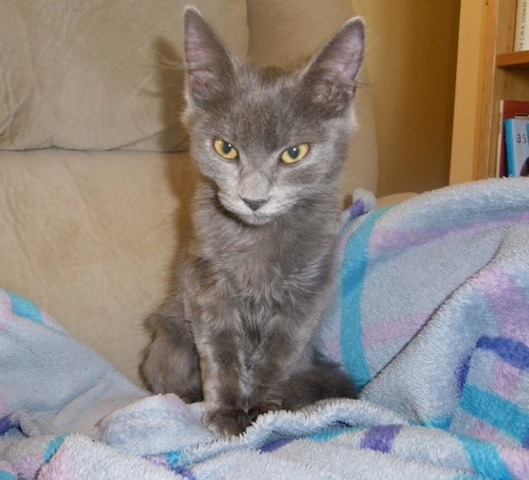 Anna is a 12 week old medium hair grey girl. Anna has a very loving nature and would not be suitable for a boisterous family but would be perfect for a family or single who wants an affectionate gentle kitten. Anna loves to sit on your lap and be the centre of attention and with those beautiful large amber eyes she will gaze adoringly at you