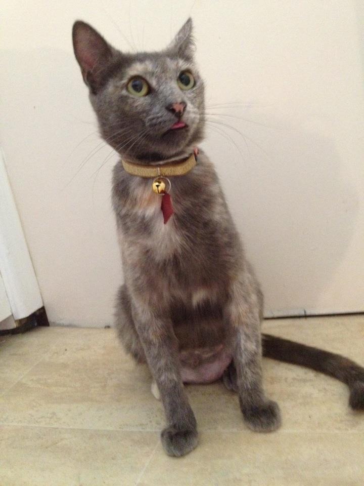 Hi my name is freckles and i'm a young 2 year old female kitty. I was a mother of 9 kittens hence i look run down( that's kids for u). I have been outside all my life as i was never allowed in doors. I had my kittens under a bush and raised them as best i could but i couldn't find enough food for them, so i was rescued and life definitely improved for the better. I have all the love, food and furry friends around me and i am lapping up being inside. I have been sterilised so no more babies for me - thank god lol. I love everybody and everyone i meet and i am getting used to dogs and i love other cats and small children. Please if you have a big heart and lots of love to give, i would love my forever home. I also have a collar bell and a id tag with my name on it. If you are interested, please call my foster mum
