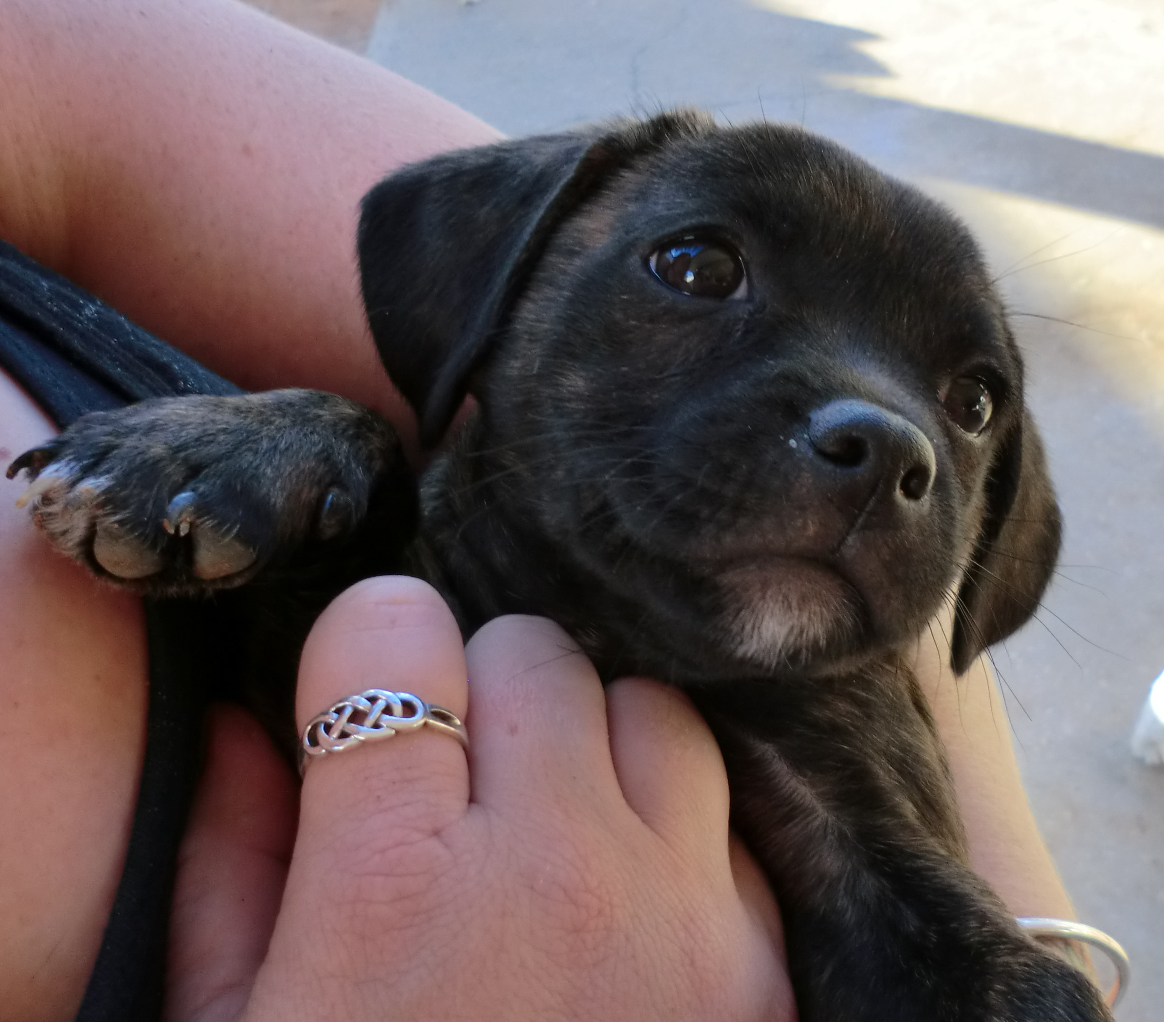 all of the pups have lovely, friendly nature’s and get along well with their carers other dogs and are used to being handled (cuddled!) by adults as well as children making them pretty much “bomb proof”. They are fascinated with the household cat who prefers to stay out of their way. All of the pups love food and aren’t fussy so hopefully this will help with their training. Cutie-pie roxie is the smallest pup and the only one who’s brindle. She is a real little character who likes bossing her brother’s around but she also has a soft, caring side and enjoys cuddle-time. While in care roxie will learn the basics such as “sit” and “down” and how to walk on a lead as she definitely needs some practice with this. As she’s only a young pup she will require ongoing obedience training as well as socialisation with other dogs so she grows up to have lovely manners! daily walks, secure fencing, bones to chew on and toys to keep her stimulated are also a necessity so she doesn’t get bored and up to mischief. The pups kinda look like mini staffy’s with soft floppy ears and we reckon they’ll be small to medium once they finish growing. Roxie would be best suited to an indoor / outdoor lifestyle with either a doggie companion to learn from or on her own but only if she won’t be left alone for long periods of time especially while she’s a pup. View video of roxie: http://youtu. Be/w9jbyiee7b4