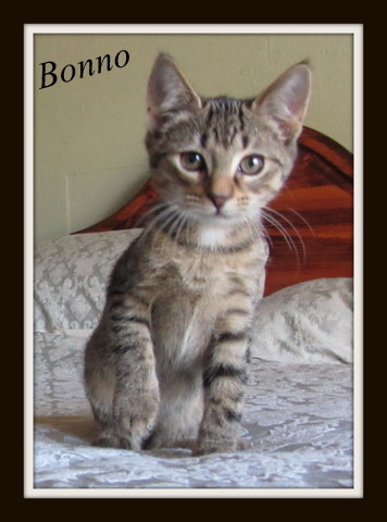 Tabby male bonno is a cute little man that is a little on the shy side so he needs a home to call his own if you could give him a loving home please contact me