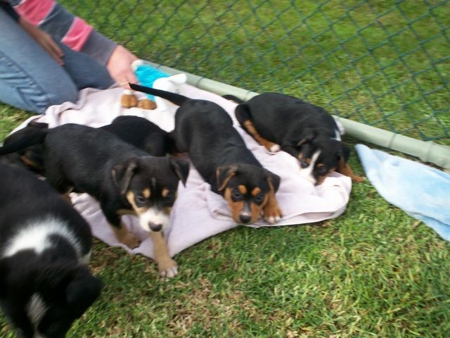 There are 5 girls & 2 boys, mum is a shep x rottie & dad ??????????, 3 are black & tan & 4 are black & white, tequilla mum is looking for a new family as well, poor mum delivered these pups in the pound & has the the sweetest mature. None of this family are available till mid may. New pix coming soon