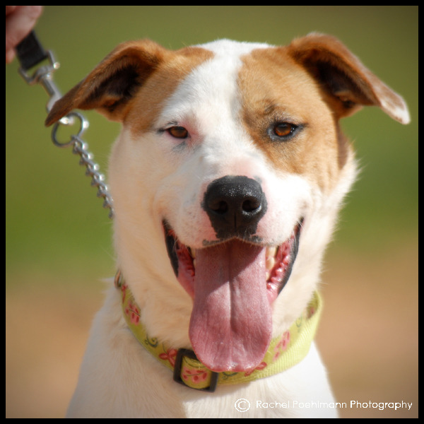 What can we say about gypsy? well, normally we try and help the dogs put their best paw forward but with our gypsy this is a bit difficult. Gypsy is extremely unsuited to life at the shelter; not that any dog is suited but some handle the situation better than others. Gypsy really isn't happy here and she is suffering from sensory overload; too many smells and sounds and comings and goings. The poor girl just can't seem to settle and while we are sure there is a tremendous gal lurking underneath we only get a glimpse of her every now and again. Like when she had these photos taken today - once she was walked up the road away from the confusion of the shelter we discovered she had had some training and knows 'sit' and 'drop'. This is not the first time that we have been unable to gauge the temperament of a resident due to their unsuitability to their surroundings and once they are adopted settle into their new homes perfectly. We really need someone to take a chance on this genuine rescue. Note: she has not shown aggression while at the shelter, she simply remains in a highly excited state which makes her hard to manage. Age: 1 year old (as at april 2012)