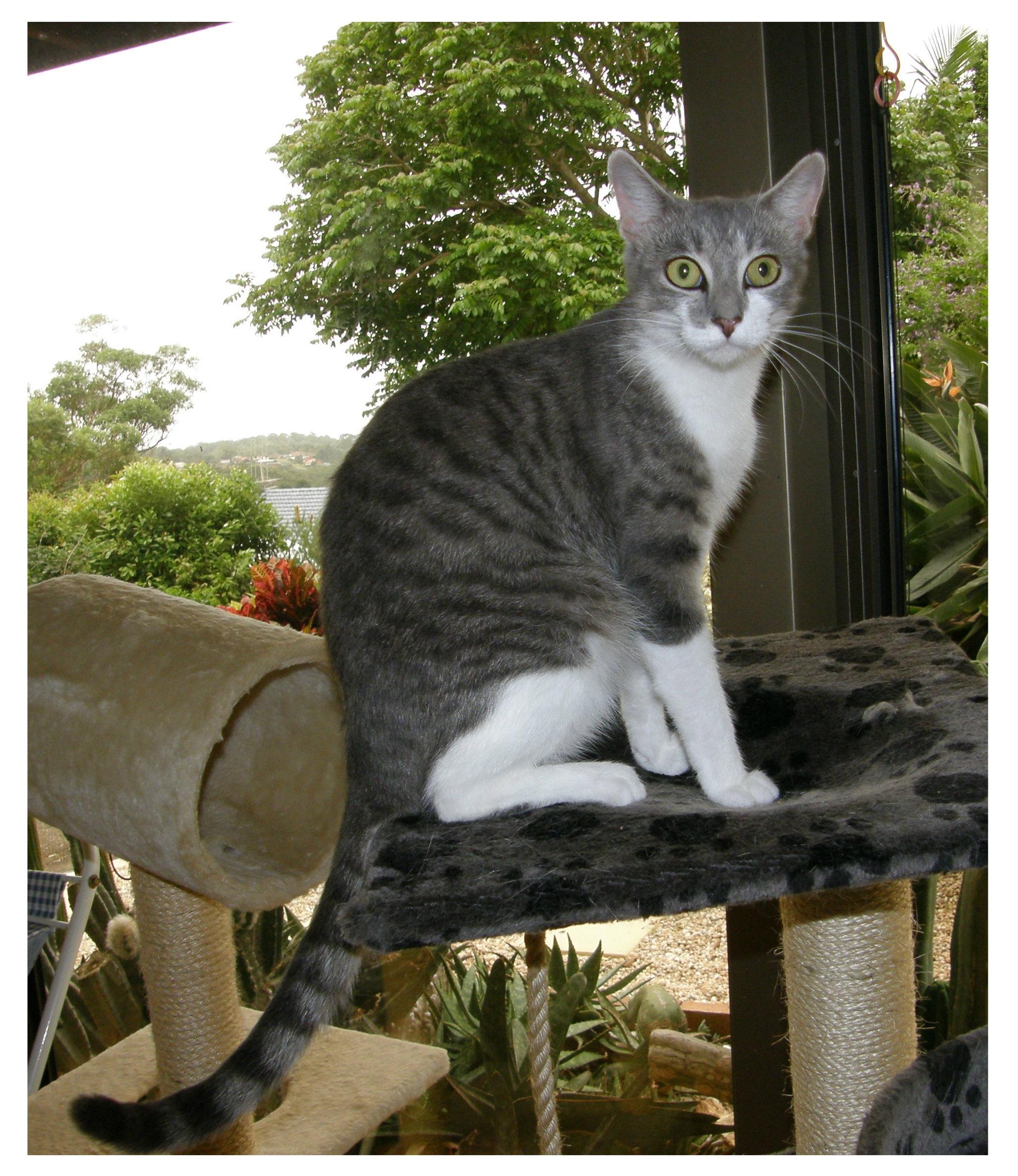 This beautiful girl is chloe, very pretty markings of grey, white and a little black. She is a happy and playful girl and extremely friendly with everyone