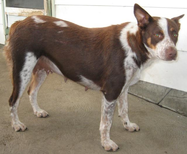 Nikki is a beautiful, intelligent and active young dog that is very well mannered and does as she is told without any fuss or bother. She hates to get into trouble and will unfortunately cower down if your voice is raised too loud. The vet seems to think she has been mistreated into submission, which is a shame, because she is so intelligent that this treatment would not be necessary. Nikki has a beautiful, and now very healthy, chocolate and white coat and is stunning to look at. She has a stumpy tail so probably has cattle dog in her history. Nikki is very active and loves to run and chase the other dogs. The hose is her best mate to play with and if she gets soaked she couldn’t be happier. Nikki is very good with other dogs, both small and large, and is not bothered by the cats. The ideal family for Nikki would be a very active family who would spend plenty of time with her and another dog to play with would be just what she needs when the family is busy. Nikki is not the type of dog to be left alone to her own devices as she is a working dog and will need continued activity to keep her stimulated. Nikki's foster carer cannot stress enough what a good dog she is. Nikki is in wonderful condition and ready to meet her new family who should be over the moon at adopting such a lovely dog.