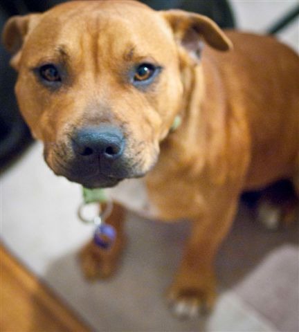 full body touch: he was too wriggly. Health: his health appears to be good. Personality: on this day 26/04/12 at 10am, i found this boy to be friendly. He is sooky like staffies usually are, so jumps up on you for attention, which he loves. Lead training: good