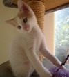 Ginger is a very loving kitten. He is happy to be cuddled all day and he is on your lap straight away if you sit down!he has a beautiful silky white coat with van like light ginger markings on his head and tail. Ginger loves to play and is a very happy little kitten. He gets on very well with his brothers and sisters and is also used to two small dogs and two older cats. Ginger loves children and plays regularly with 4, 6 and 9 year olds. He was dumped with his brother and sisters when they were ten days old, so he was bottle fed until 4 weeks of age. Ginger would fit into a family perfectly but would just as easily suit a couple or someone on their own. To find out more about ginger or to come and meet him please call Cynthia 0417719256 (i am at ormeau)