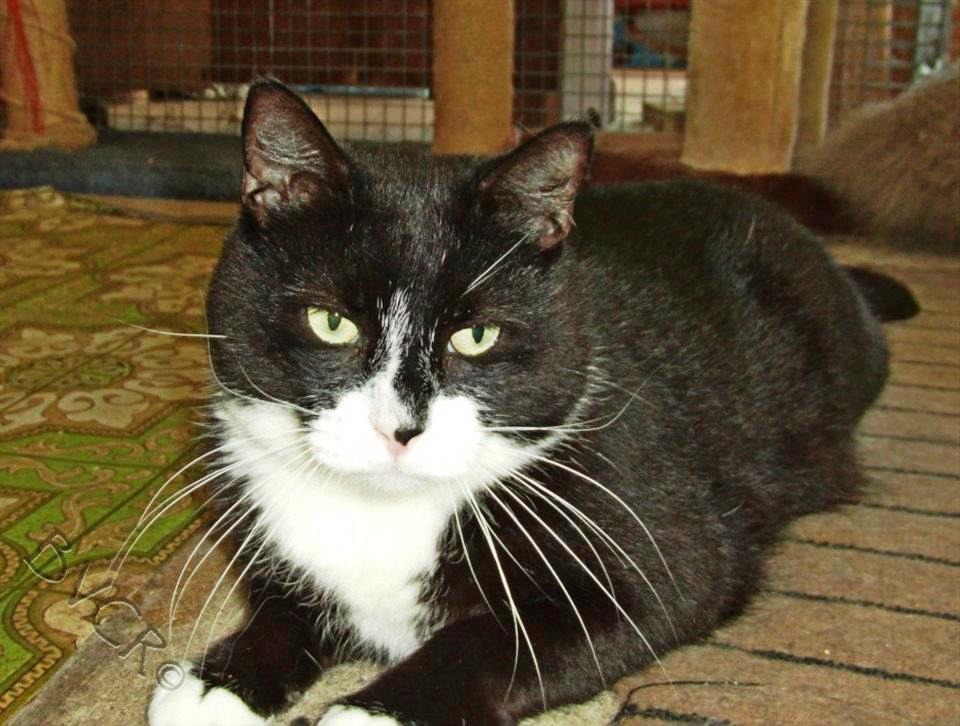 Panda is a big boy who's never really grown up. Like many males i think he'll be a kitten at heart for life. He'd be best suited to a one cat household and preferably no children. Panda is a wonderful, gentle boy, a bit on the dopey side at times, and he does tend to like to play nip. He doesn't break skin but it wouldn't be a good idea with children around. He takes a while to trust strangers but once he warms to you the problem is getting rid of him from underfoot. He'd adore having a home of his own because he's never known the joy of having his very own space to play and relax. A few good feeds and he'd settle in and take over your couch. If you'd like to meet panda please email louise