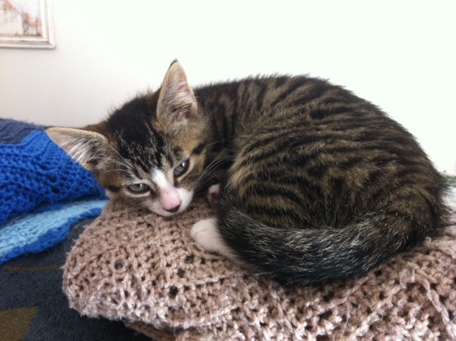 Meet little kimberley she is about 10 weeks old and already she is showing signs of becoming a liitle lady! kimberely is a tabby with white mixed in, she has the sweetest nature and a very loud purr, she loves cuddles and running around wth the other kittens. Kimberley is great with other cats/kittens and dogs do not bother her