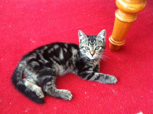 Meet molly she is about 10 weeks old and is a dark tabby. Molly has the sweetest nature she loves to follow you around loves to have a cuddle and a chat with you. This little girl is personality plus who always has a purr!