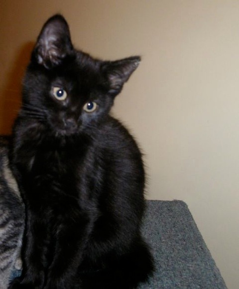 Nellie is a 9 week old black short hair female. Nellie was born in the foster home and along with her mum she has only known love and affection. Nellie loves to play with her siblings or happily will sit on your lap and purr