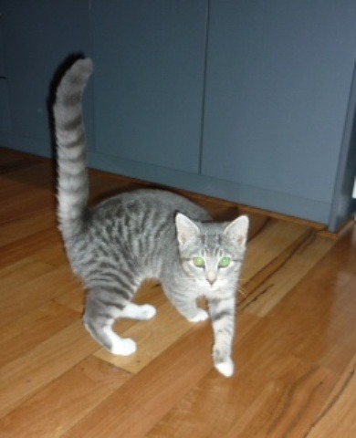 Charlie is a stunning silver/grey tabby with a beautiful thick coat. He loves people and children and is very cuddly. Charlie is litter trained and loves his food. He has beautiful markings and everyone comments on how attractive he is. Charlie enjoys the company of other cats and loves playing with his kitten toys