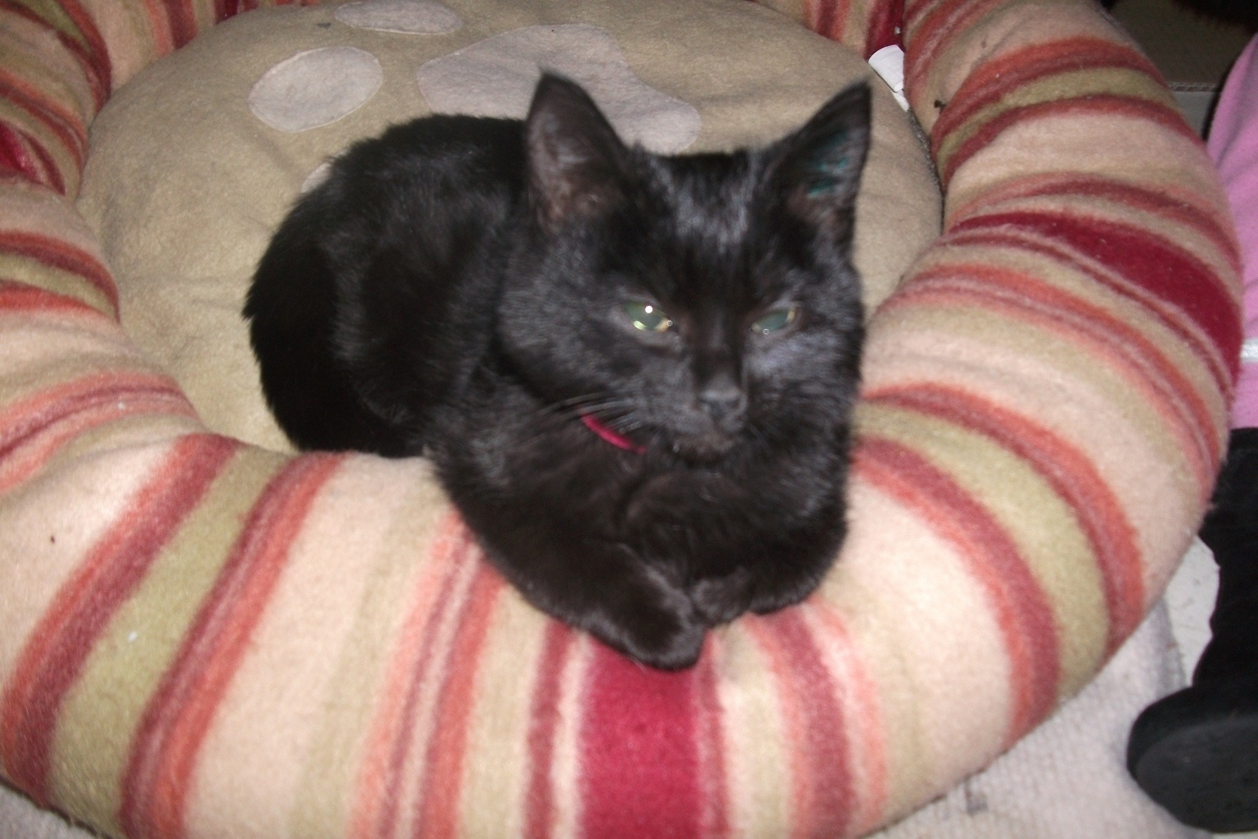 This lovley girl has the most beautiful jet black coat ever. Its so shiny and soft it looks like velvet. She has a lovely friendly nature and loves to purr and snuggle
