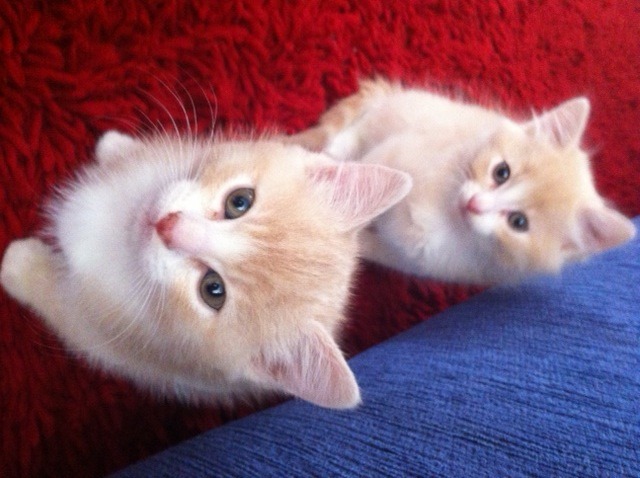 Hi! we are beau (at front) and barney (at back). A mischievous pair, so we are told. There is nothing we like better than a feed followed by a snooze in a sunny spot or on a fluffy rug. We chase anything – balls, ribbon, our tails and each other, and we like a bit of rough & tumble. Barney has longer hair than me (beau) but we can both be hypnotised to sleep with a gentle rub behind the ear or on the tummy. We don’t need expensive toys - an empty tissue box, ping pong ball or ball in a washing basket provides hours of fun - but a scratching post is good exercise and will save us clawing your furniture. . . . Not that we would do something as naughty as that!!
