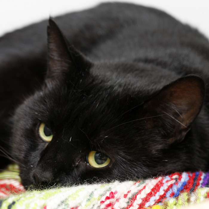 Renamed from "beauty" and the son of snuggles, this 3 year old is a lovely black boy. He seems to be a shy cat, and perhaps would prefer a quiet home with no children. He will need some time to adapt to a new environment, but will flourish outside the "scary" world of the shelter. It would be nice to see bewdy adopted with his mum snuggles, but of course they can be separated