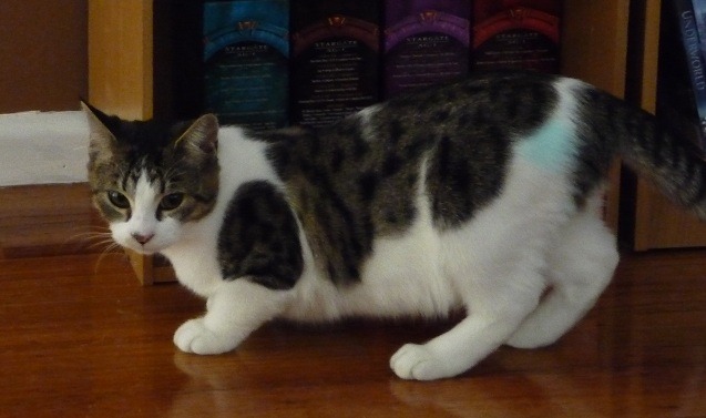 Epsilon is approximately 8 months old and amazingly friendly. Though he had never met a dog before entering foster care, within days he was trotting between the labrador's legs and trying to cuddle up to the beagle. He is not bothered by other cats, kittens or the over-excited children he met briefly. Epsilon loves men, to the point where he will follow them around, flop on their feet and roll on his back trying to be cute. He is a chubby boy with a wide head and big paws. He is going to be a big boy one day so if you're looking for a loving couch cushion, inquire about epsilon. (epsilon comes with a lifetime guarentee - if for some reason he can no longer be cared for he can always be brought back to his current foster carer)