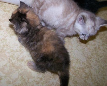Shelly is a very tiny kitten that will be a very small cat. She has been in care for a few weeks now but is just a small fry. Shelly loves to sit on you shoulder or be held on you chest so that she can cuddle you and purr you lots of stories. Shelly did show signs of cat flu but this was most likely a reastion to her needles as she has fuly recovered and other unvaccinated kittens here did not have any symptoms at all. Shelly will need a home where she is kept inside and allowed to be part of your life