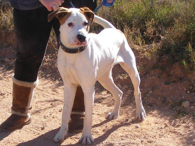 Chynna is a strong girl and needs a serious owner who is prepared to do some work. She is stunning but has had no training and wil mouth. When you spend time with her your quickly realise that everything is a game to her and she really wants you to join in. There is no real nastiness about her; she simply has never been taught any better. She is strong on lead and will pull. She isn't sure of her surroundings and is defensive around other dogs and was a bit too keen on the cats. In the right home with the right person she will do very well. Not suitable with children at this stage. • breed: american bulldog