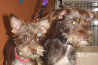 Brownie (r) and cookie (l) were rescued from the pound together and they appear to be brother and sister. We would like them to be adopted together as they are the best of pals and brownie screams his lungs out if he's separated from cookie! they are ideal for anyone who works and would like an instant canine family !!