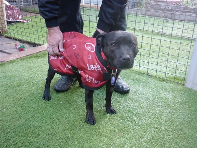 Fantastic news rosie has gone to her new home. . . Good luck rosie you're a special girl. Hi my name is rosie and i'm 7 years young. I've had to keep my jacket on because i'm really underweight but it wont take long to fatten me up now i'm at srv. I'm a lovely brindle girl and jan said my coat is lovely a soft. When i put some weight on i will look really good. I will need to go to a family that is home a lot, a retired couple would be perfect for me. I have lived with children & i'm good with other dogs. Do you like the photo of me kissing uncle mick. . . He loves me like everyone at srv does. I really would like to be in a home asap cos i'm really missing having cuddles and it's winter so my skinny body is finding it hard to keep warm even with two pairs of pj's on every night. If you think you could give me a loving forever home could you please go to stafford rescue victoria's website and fill out an adoption request from before phoning jan on 0408 515 111. Please give her time to read the form before phoning