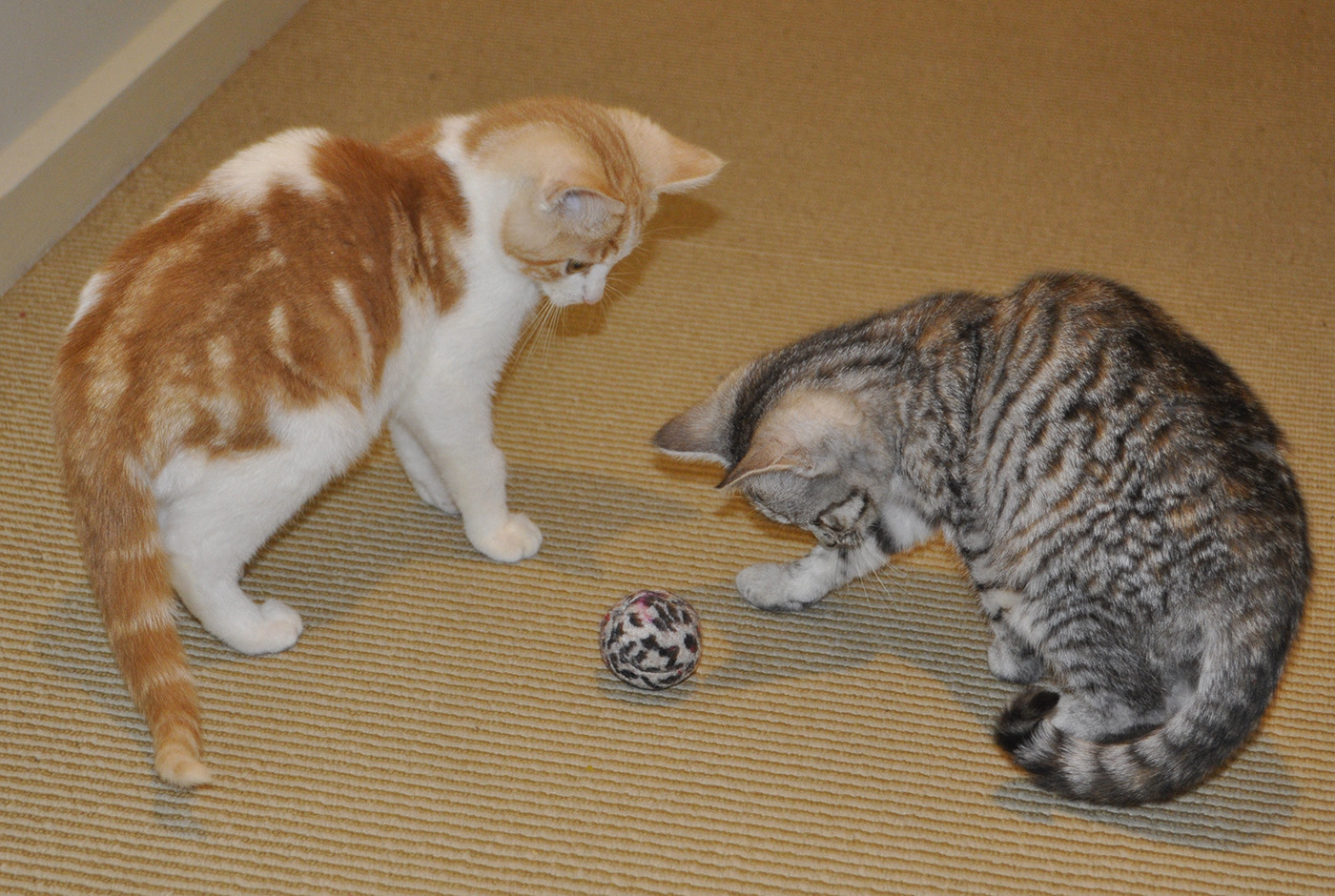 The kittens. . . . The boy is the ginger called monty. The girl is the striking tabby called bubbles. Monty is lively, playful and affectionate. Bubbles is definately the more timid of the pair. . . Playful when she thinks no-one is looking. Hard to pick up for cuddles but she will sneak up for a cuddle on her terms, and usually in her brothers shadow. Monty has gorgeous silky soft fur and bubbles is just the most stunning little lady ever! just a shame she is so shy but slowly coming out of her shell. To be adopted as a pair for $250