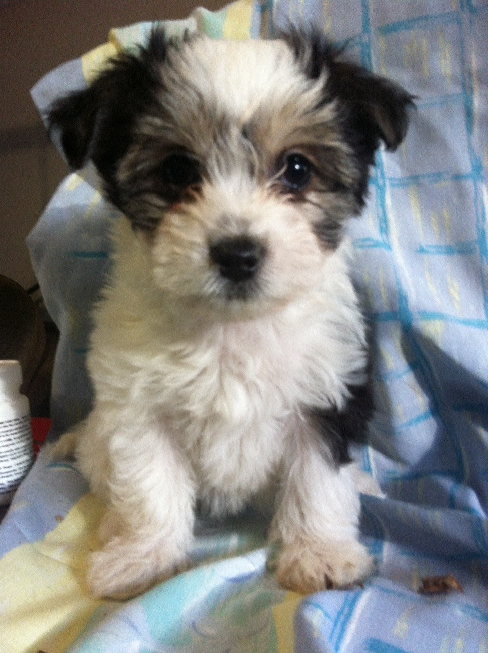 Scarlett is a cuddly little girl, her coat is slightly longer than her brothers, and she seems to have taken more of the maltese traits. She is extremely playful and well socialised. She has a mixture of white fur with black patches. Scarlett shouldn't get any bigger than around 5kg