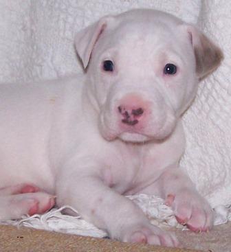 Trevor is a special needs puppy as his carer is now sure that he is deaf. She is currently working on teaching him hand signals for training, e. G. For "no" and "come". Trevor will need very special, understanding owners committed to his ongoing training in order to keep him safe in his silent world. Any previous experience in training or owning a deaf dog would be a benefit. Due to both trevor's deafness and pale skin, he needs a home where he is mostly indoors, with access to the yard. He also needs the company of a well-trained, well-mannered, friendly, hearing furkid buddy to lead the way, to learn from and to help be "his ears". Trevor came into care at only three weeks of age. He appeared in good condition but had a spot of "dirt" on his head between his eyes. On closer inspection it was found to be candle wax and more was found on one of his legs. Trevor is probably a mix of some "bull" type breeds like staffordshire, bullmastiff or perhaps some bull terrier as well. When mature, trevor will be a heavy-set dog and, even if he doesn't finish up tall, he will still be strong and muscular. Hence, he will only be available to a home experienced in caring for this type of mix and house him as a beloved pet. Trevor has a defined personality already, he's an inquisitive, intelligent, outgoing and happy little boy. As can be seen from the photos, trevor will need protection from the sun, especially around his eyes and nose where he lacks dark pigmentation, so he will need to have access to shaded areas or indoors and/or his own personal human servant to apply his sunscreen. . . Or some blues brothers dark sunglasses! trevor will be ready to go to his new home once he is around 8 weeks of age but, if you feel you can offer him the right home and lifestyle he deserves, please don't hesitate to enquire