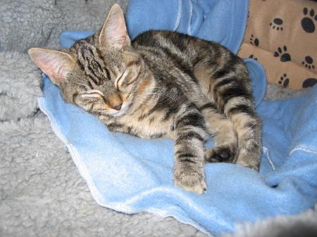 Meg is the most affectionate, gentle little girl you could imagine. Not only is she really pretty to look at, with her attractive brown and ginger tabby markings, but she has a delightful personality. She is a friendly, sociable kitten, following you around the house and meowing to get your attention. She loves to be picked up and will happily smooch on your lap, purring contentedly. If invited, she would love to curl up under the blankets in bed and purr for you all night long. Meg gets on well with other cats and dogs. She loves to run around and play with her kitten friends, but loves a quiet snooze in a warm basket when she gets tired. Meg has been vaccinated, wormed, flea treated, microchipped and desexed