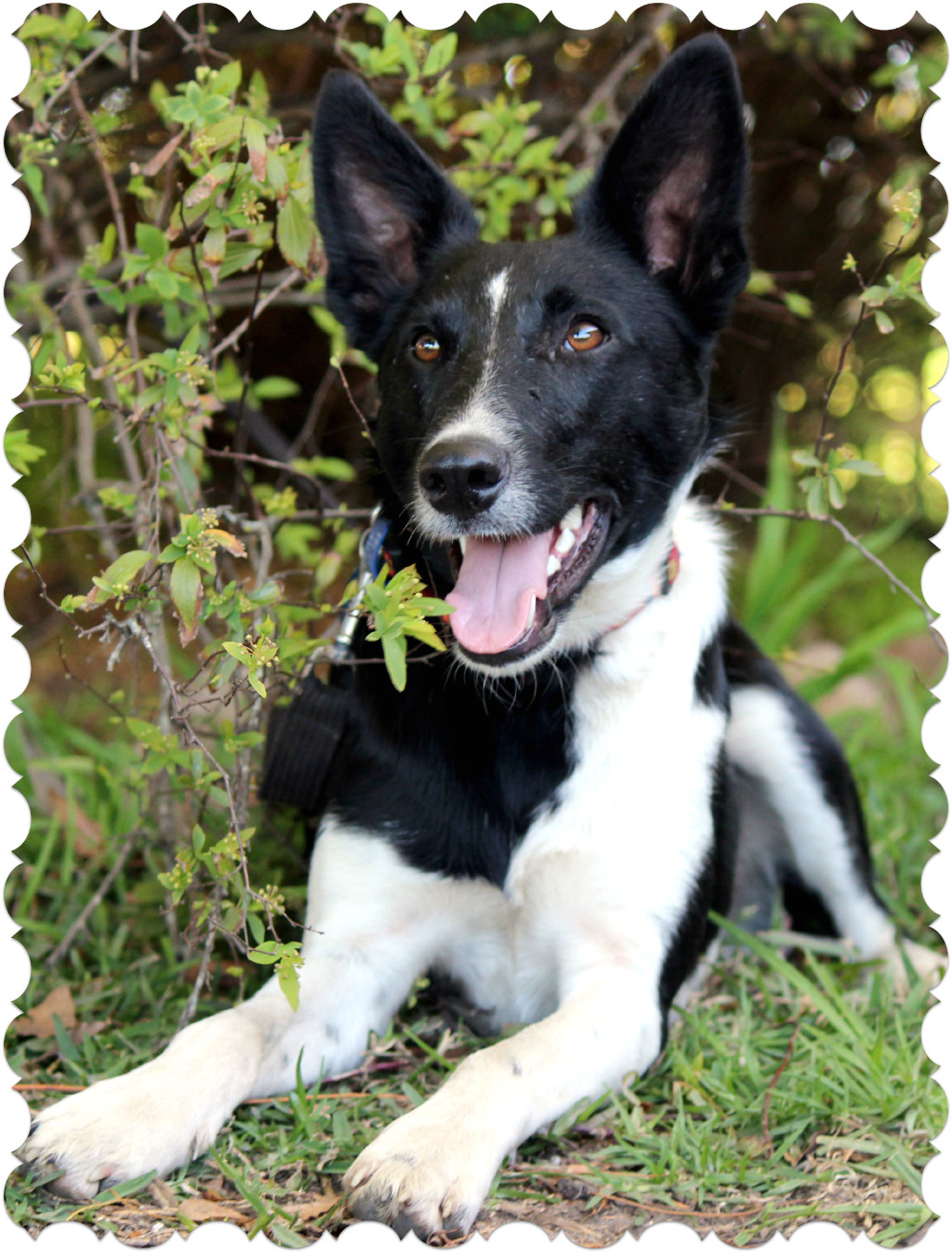 Moe is a border collie x standard fox terrier, around 1 yr old. He could be a star in agility, competitive obedience, tracking, anything involving activity and a good mind. He is also very funny! he has the long nose and smooth coat of the standard fox terrier, the border collie colouring, and he’s smart, smart, smart! he sees everything in life as a bit of a lark; very little fazes or fools him. He’s mischievous, playful, confident, and very athletic. He needs to find a home where he has an active life in both body and mind, and an owner who knows how to be the leader, and how to help him reach his potential. I can envisage him doing very well in competition obedience, or agility.