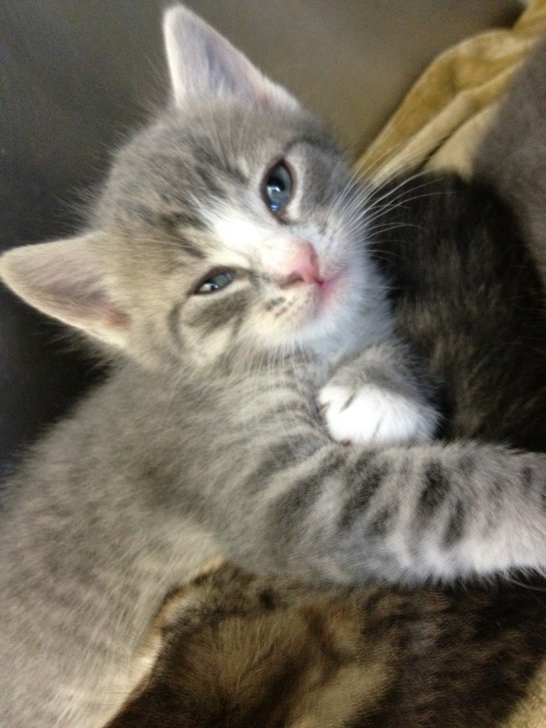 1 of 4 beautiful natured 8wk old kittens, born in the shelter to an abandoned mum. They have been very well handled and socialised by the nurses and are fantastic smoochers