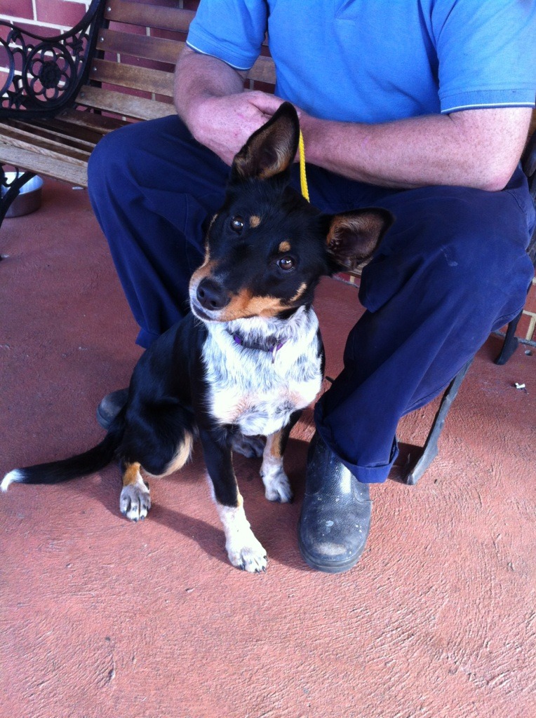 Evie is a female black and tan kelpie cross approximately 10 months old. Her colouring shows a smidgeon of cattle dog, but she is foremost a kelpie. She interacts well with people when comfortable, as she does other dogs behind fencing. When introduced to other dogs in a one on one scenario, she shows submission typical of a puppy/young dog but has also shown once introduced, she can socialise well with multiple dogs. Cat interaction is also promising - she has been shown a cat while held on a lead and did not display any aggressive/domineering behaviour and in fact ignored the cat after a short period of time. Evie is not food driven but certainly shows signs of a smart, trainable dog and i believe will grasp basic commands quickly. She is generally quiet, not prone to barking and also travels well in the car. She has been wormed, microchipped and vaccinated already and is booked in to be spayed early october. She has a very calm nature about her and would do well in any family or farm environment