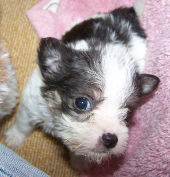 Yippee and her siblings came into foster care after being dumped at the pound at around 3 weeks of age. Days later their mum (maggie) was found by council rangers abandoned in a house the tenants had left. Maggie and her babies have now been reunited in care. Yippee is the smallest of the litter and she is also a clever and very busy little girl. She is always finding an "escape hatch" somewhere to lead the others through! yippee may be small but she certainly knows how to look after herself. She is super friendly, outgoing and confident. Yippee also loves her cuddles and a belly rub. While yippee is still a baby, she can't be left alone in the yard to fend for herself and, being such a little munchkin that will only be small as an adult, yippee would do best as a predominantly indoor pet with free access to the yard. Also, all this litter have a lot of fur, therefore they will require daily grooming and a regular bath. Professional grooming is recommended about every 4-6 weeks. They will need particular attention to the eyes, ears and face, as well as the bottom. It is best to clip the fur around this region and keep it clipped. These little munchkins also need to be kept on a good, balanced diet - including raw bones, raw meat and some veggies as well as quality dry kibble to keep their teeth clean and healthy. If you're not prepared for this level of care for these very special little mites, then these aren't the puppies for you. Yippee would be best suited to a home preferably with no young children/toddlers in the household. Older chilren,"empty nesters" or the like would be ideal - if you enjoy spending time to fuss over, primp, preen, then you will, in return, have the most loving, loyal, happy and healthy little entertainer you could ever wish for. Yippee and her siblings won't be available to go to their forever homes until around 8 weeks of age but, of course, if you feel you can provide the right home for yippee, please feel free to contact to discuss having her placed on hold for you