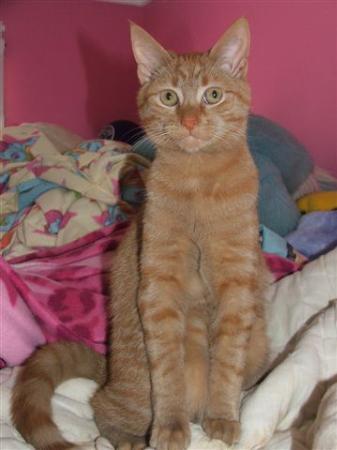 Little tom is a real cutie! he is a very active little man who likes to spend his time playing rather than having cuddles. He does however, like to curl up on the doona for his quiet time. He is a confident cat and is currently living with other cats and dogs and enjoys playing with them. He lives with children (5 & 7) and although he plays happily with them he does have a habit of gently play biting - although this is getting less frequent and he should grow out of this. He does like to play fetch though and he brings you his toy you throw, he chases after it, attacks it and once it's 'dead' he brings it back for you to throw again. He is just a gorgeous, cute kitten with personality plus