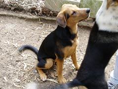 This is erin. She is the only one of the litter left, that was born to sal, a bitch that was surrendered to us and who then rapidly grew! sal is a cattle dog and we are pretty sure that dad was a rotti, as erin is the only one that looks remotely like sal. . . All the others looking like mini rottis. She is 9 months old. Poor erin, even her mum has a new home. . . Check out sal in our happy endings page