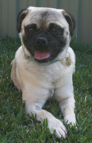 We are not absolutely sure what other breed Ace has in him but he is certainly very cute! Ace is in foster care with two other dogs and gets along very well with them. He is an active boy who would love a family willing to take him for long walks, socialisation at the doggy park and some training thrown in for good measure. Ace is not small and stocky like a Pug instead he has longer legs and a longer snout which is better for his breathing at exercise time. Ace would love an active companion to play with while his owners are out or at work and older children would also suit him as they could throw the ball and play with him. Ace has a slightly shedding coat like all Pugs and will require regular brushing and a bath ever few weeks. He is being house trained at the moment and we expect that he will learn very quickly to use the doggy door. Ace is a house dog that must sleep indoors and have access to the home when his owners are there.