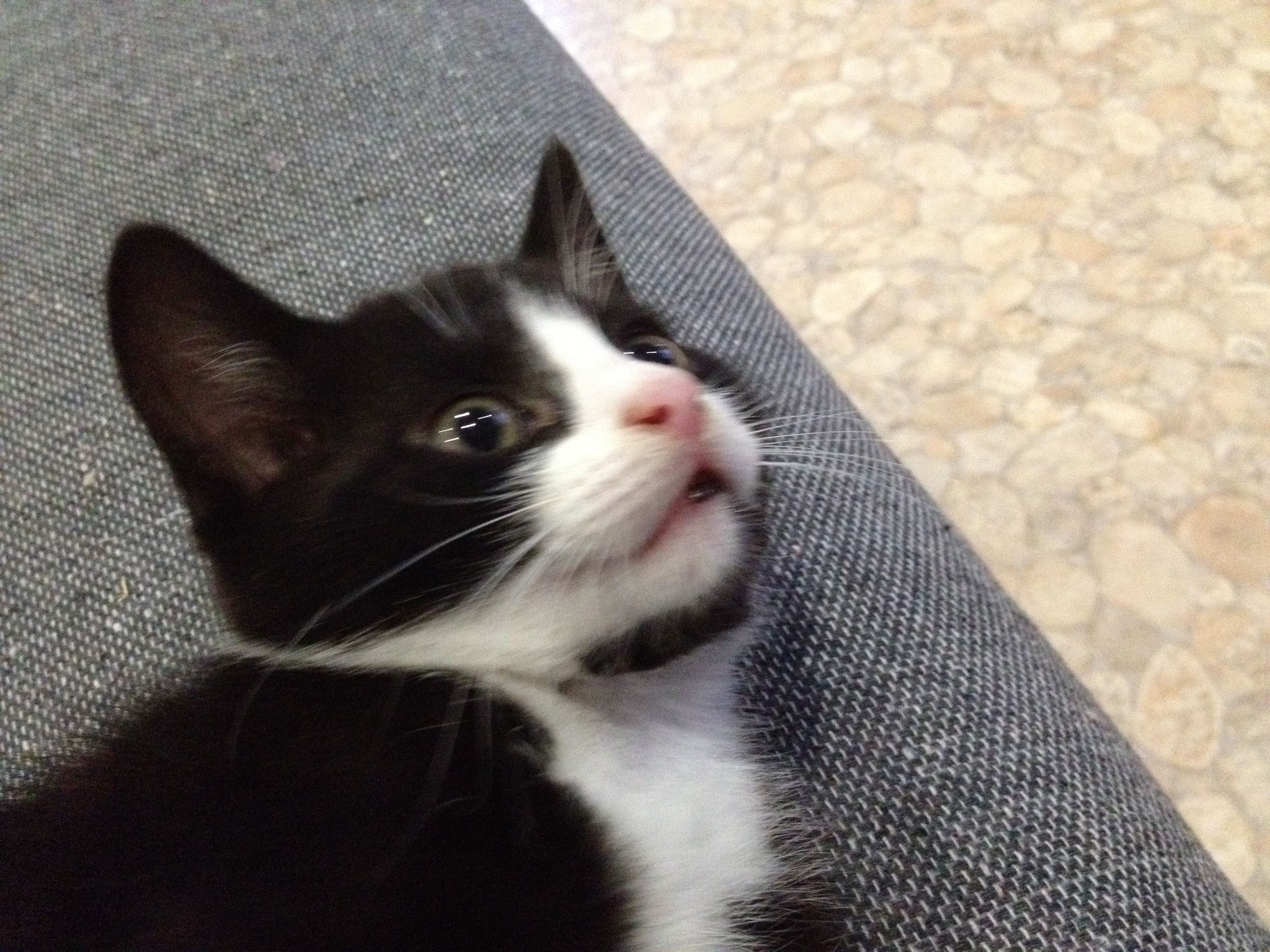 Meet Peso, a 7 wk old black & white kitten. Like his sister Kloe he loves to eat, sleep and play.