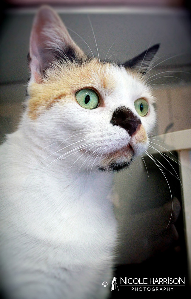 When a kitty cat is so lovely and as purrfect as our Kemba, it is difficult to know where to start. Firstly it is hard to go past her incredible good looks! Kemba is so pretty and colourful with her tortoishell and white coat and her Burmese face is just gorgeous with big yellow eyes that show how much she loves her human friends. Kemba is Mrs affectionate and loves cuddles, pats, fussing over and just any general admiration that is on offer. She loves belly rubs and purrs away while her human admirers spoil her rotten. She is an easy going girl who will make fabulous company to any cat lover who will love her for all of her kitty years. Kemba is looking for a home where she will live indoors only as she has a sun sensitive nose and will be prone to nasty skin cancers and she will happily laze around the house that will soon become Kemba’s palace. This truly special girl deserves only the best as the best is not what she has had so far, she deserves lots of spoiling.