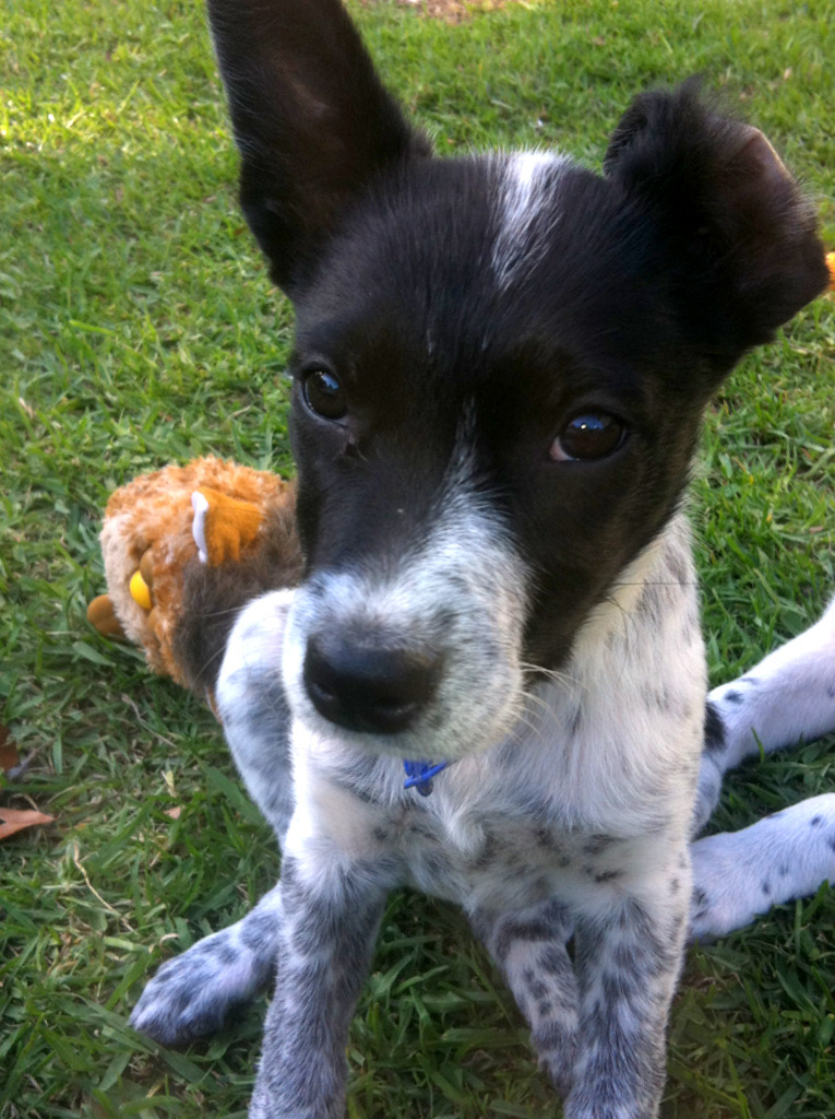 Chelsea is a 13 week old Cattle x Border Collie. She is an adorable little girl with long legs and big ears, both of which she will grow into. Chelsea is fantastic with children, and dogs of all sizes. She is learning basic commands, and as most working dog breeds do, has lots of energy. She is getting better on the lead and loves to follow you around.